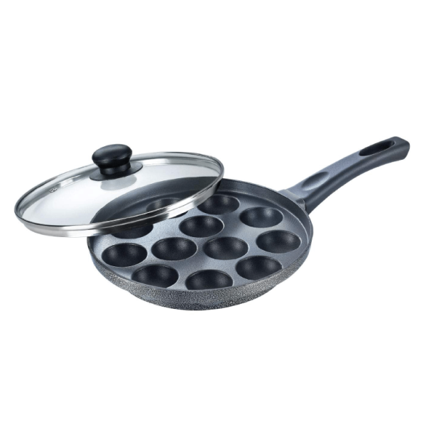 Material: Alumunium; Size: Paniyarakkal 240 mm; Base type: Gas Stove Compatible; Base thickness: 3; Included components: Paniyarakkal (1U); Colour: Black. Lid Included : Yes